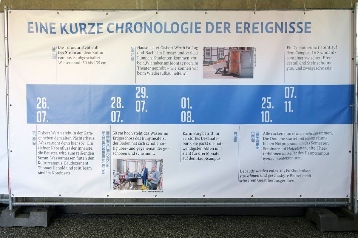 Von dem Unwetter betroffen war auch die Domäne Marienburg, eine spätmittelalterliche Wasserburg im südlichen Teil von Hildesheim, nahe der Innerste. In dem historischen Ensemble ist seit 1993 die Universität Hildesheim mit den Instituten der Fachbereiche Kulturwissenschaften und Ästhetische Kommunikation untergebracht.