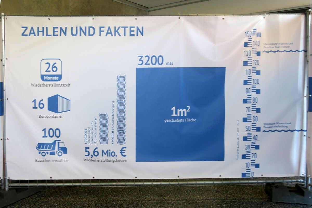 Nach und nach werden auf diese Weise die einzelnen Gebäude der Domäne Marienburg saniert und für zukünftige Unwetter wasserfest gemacht. Die Fertigstellung der Baumaßnahmen ist für Ende 2019 geplant. Die Baukosten belaufen sich auf rund 3,1 Millionen Euro.