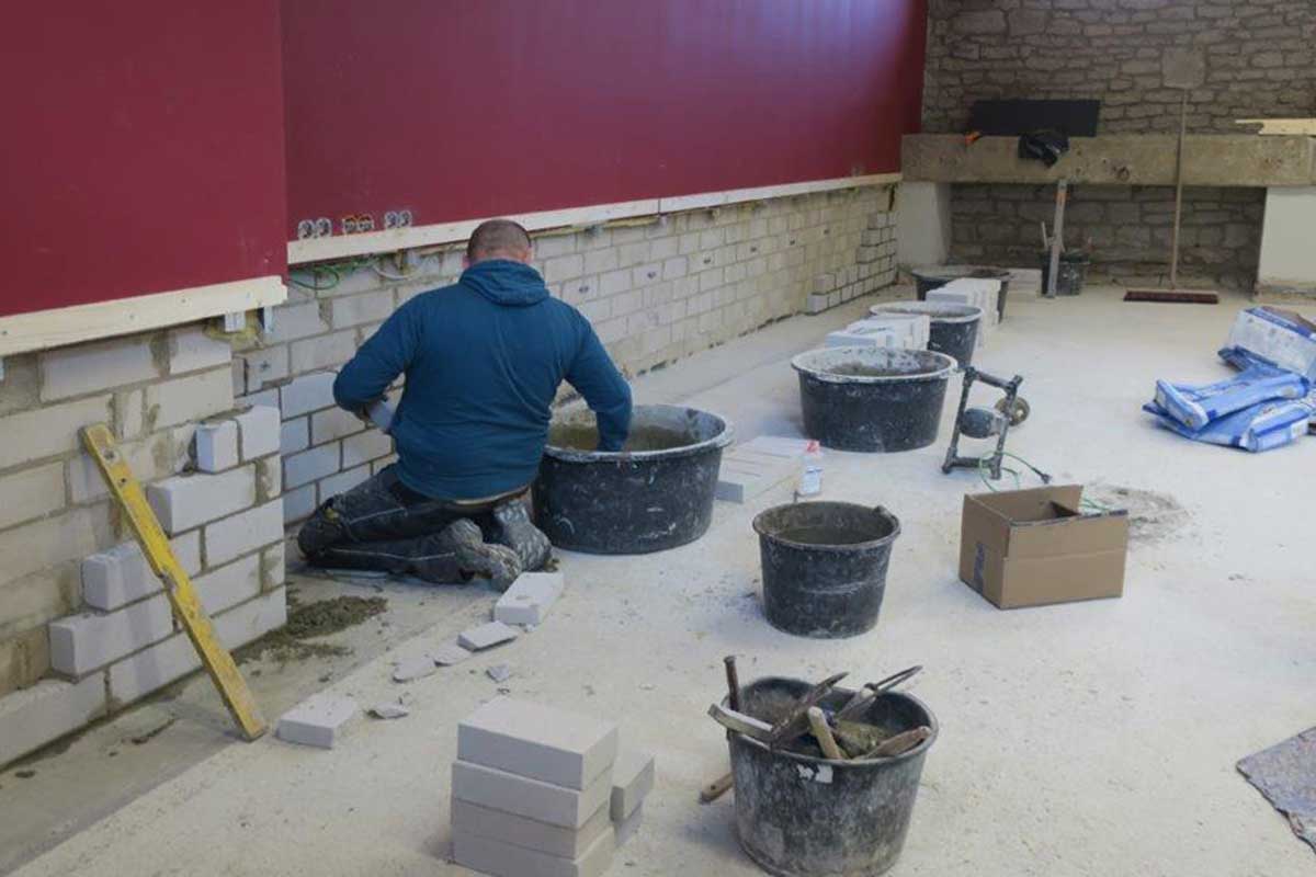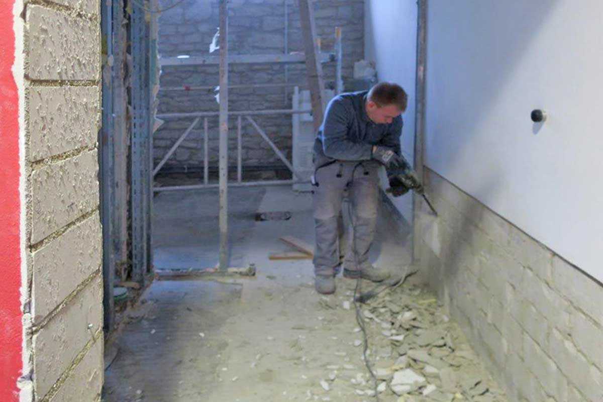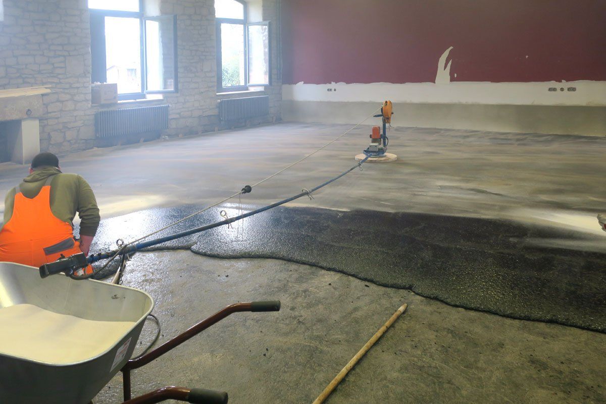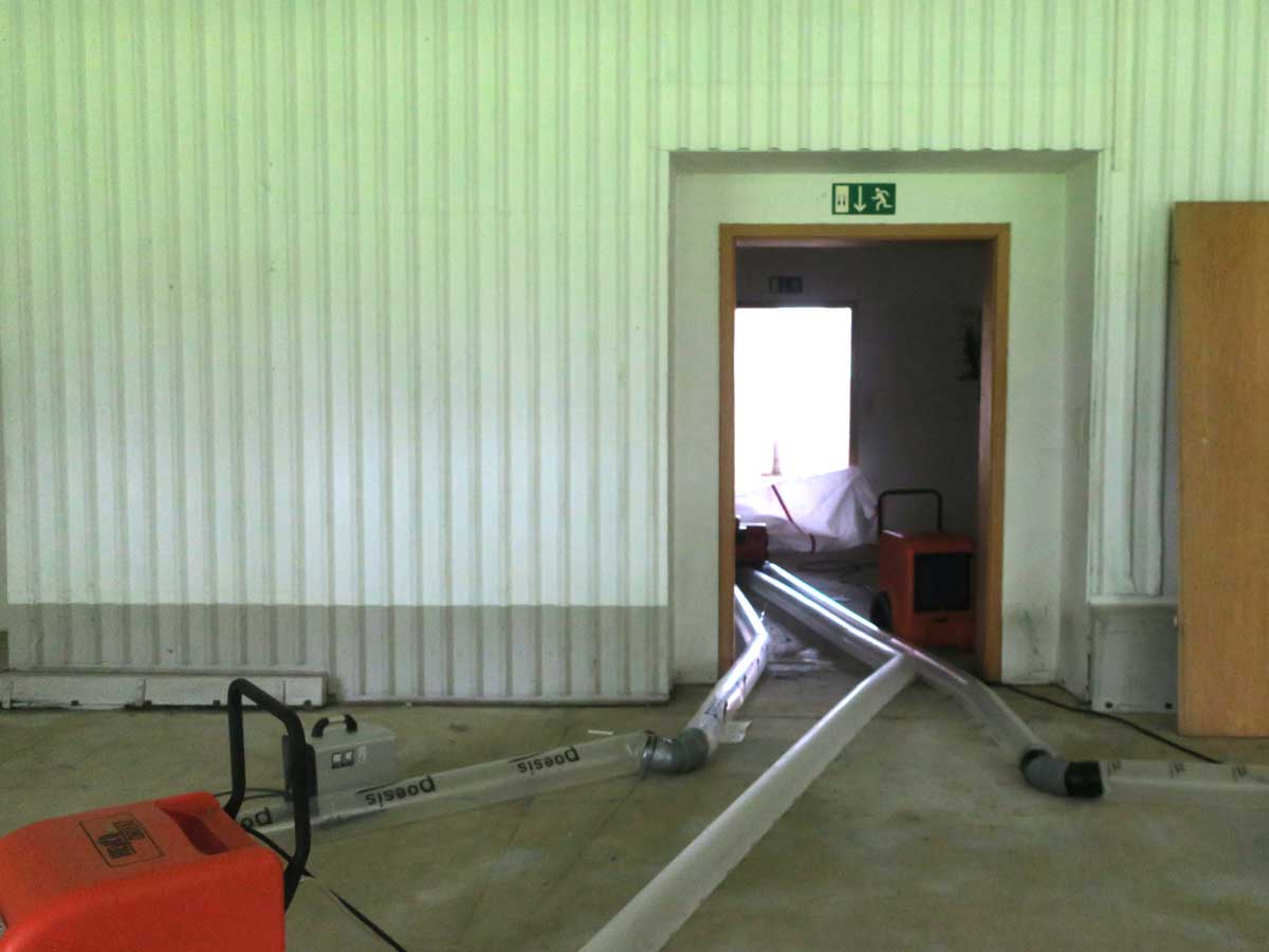 Im Zuge der Starkregenereignisse des Sommers 2017 wurde das Erdgeschoss des Kulturkampus Domäne Marienburg überflutet. Der vorhandene Belag, bestehend aus einer EPS-Dämmung, einem Zementestrich und einem Parkettbelag, wurde dadurch so beschädigt, dass er komplett abgerissen werden musste.