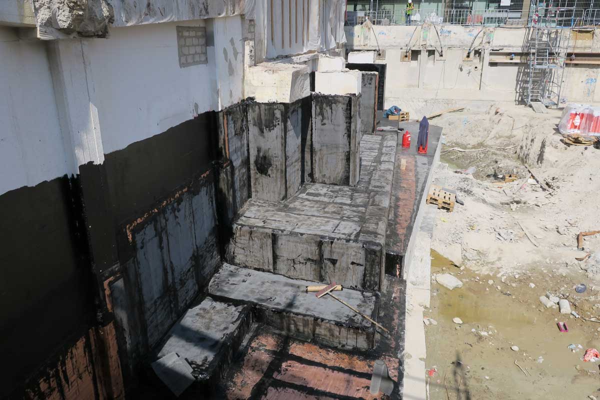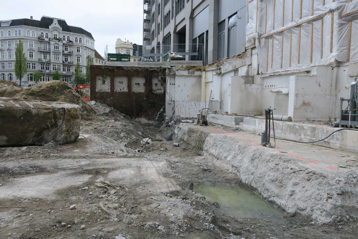 >> Schwarzen Wanne abgedichtet. Im Zuge des derzeitigen Umbaus des Axel-Springer-Quartiers wird ein Großteil der scharzen Wanne abgerissen. Der vebleibende Teil wird wieder so hergestellt, dass er den verbleibenden Gebäudeteil wieder wannenförmig umschließt. Im Zuge dieser Maßnahme muss beispielsweise die bis zu 2,00 m dicke Bodenplatte komplett durchgetrennt werden ohne das die Altabdichtung beschädigt wird.