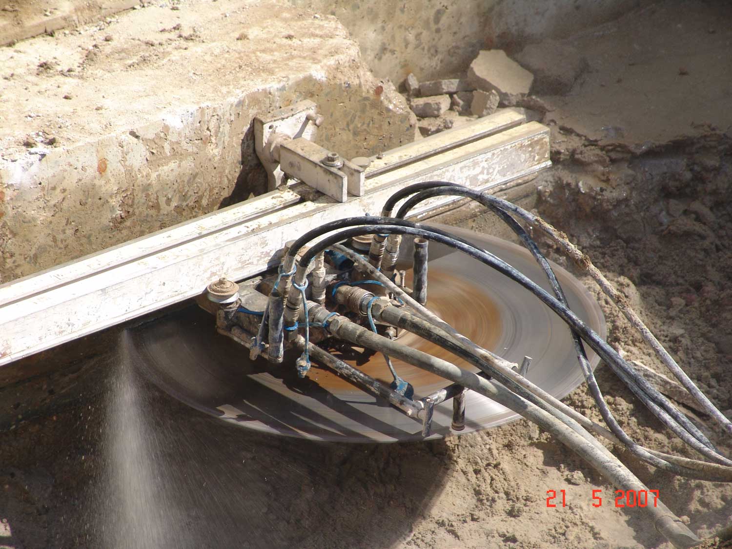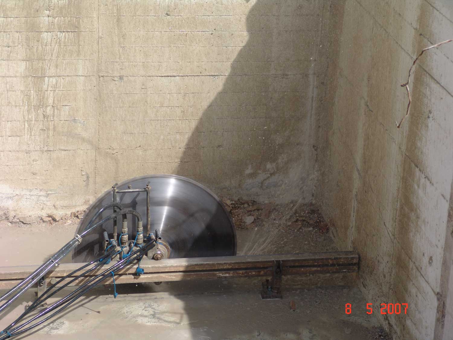 - Die Arbeiten in diesem Zusammenhang erforderten ein hohes Maß an bautechnischem Sachverstand, da die zerstörungsfreie Freilegung der Sohlenabdichtung unterhalb der 70 cm dicken Stahlbetonbodenplatten und der Wandabdichtung hinter den 30 cm dicken Wänden erforderlich war, um dort die neue wasserdruckhaltende Sohl- und Wandabdichtung anschließen zu können. Zunächst wurde hierfür das Grundwasser abgesenkt. Dann wurde der Keller, der der Neubebauung im Wege stand abgerissen und anschließend mit 170 cm großen Sägeblättern die Bodenplatte und Wände in Breite der erforderlichen Abdichtungsanschlüsse bis zum Schutzbeton der Sohlenabdichtung bzw. bis kurz vor die Wandabdichtung durch- bzw. eingeschnitten und segmentweise abgetragen. Nach dem vorsichtigen Abstemmen des Schutzbetons und der Restwände wurde die neue Abdichtung an die alte Abdichtung angeschlossen und an der Innenwand des Kellers, die nunmehr zur Außenwand geworden war, hochgeführt und verwahrt. Zum Abschluss der Abdichtungsarbeiten wurden im Sohlbereich am sogenannten rückläufigen Stoß eine neuer Schutzbeton und an den Wänden ein neues Schutzmauerwerk hergestellt.